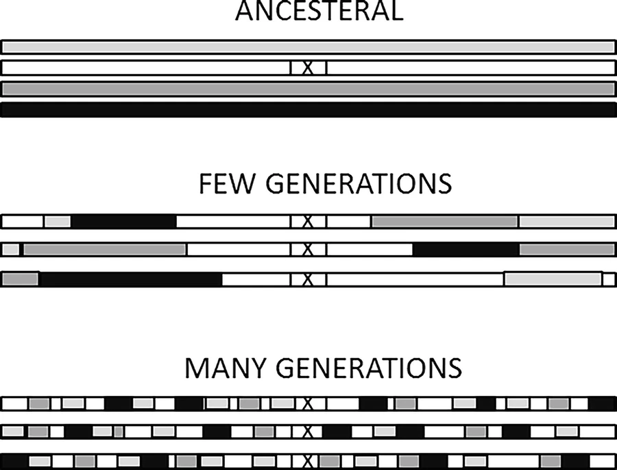 Standard methods to correct for multiple testing, such as Bonferroni correction based on the number of tests, are too conservative. This is because SNP markers are not independent. Instead, SNPs that are physically close to each other on a chromosome tend to be correlated (termed “linkage disequilibrium”). This correlation is because recombination breaks up the linkage between a mutation and the rest of the chromosome as it is passed down through generations.