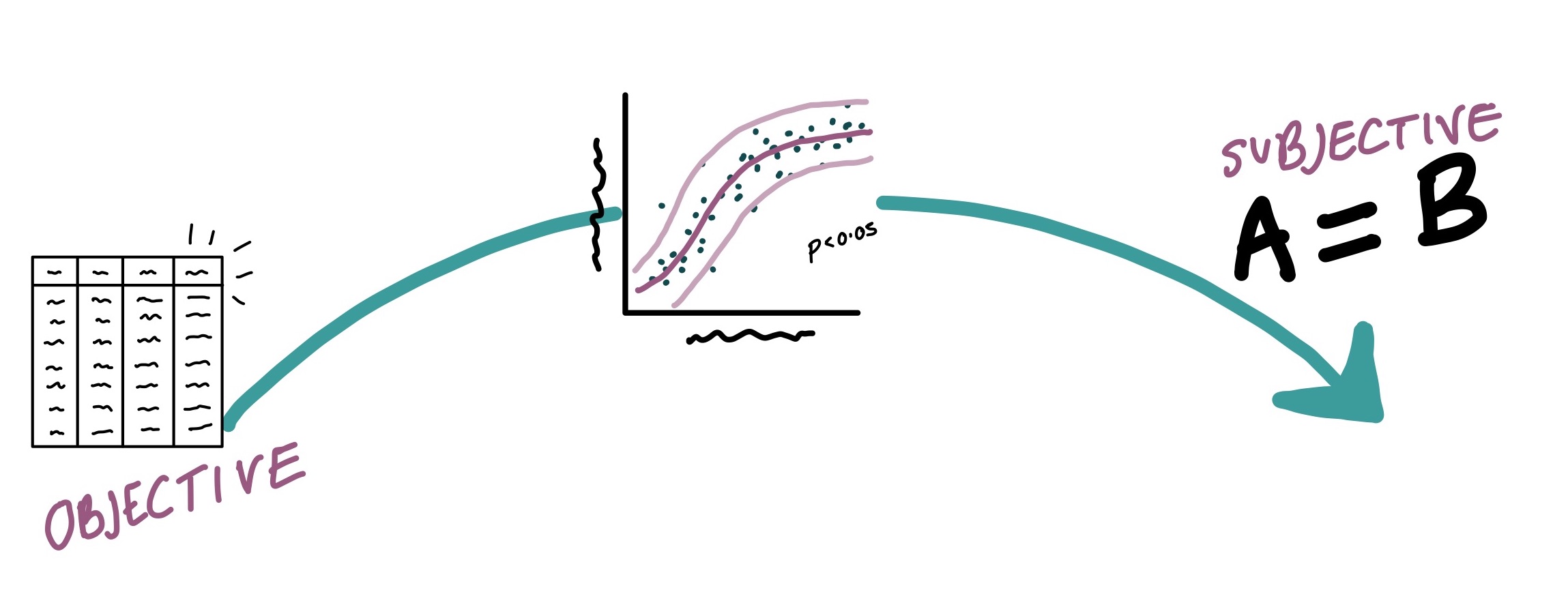 There are so many different pieces of information you can try to display using data visualisation, such as proportions, magnitudes, associations between multiple variables, differences between groups, and more. But for all of these objectives, there is also a spectrum of broader aims from objectivity to subjectivity.