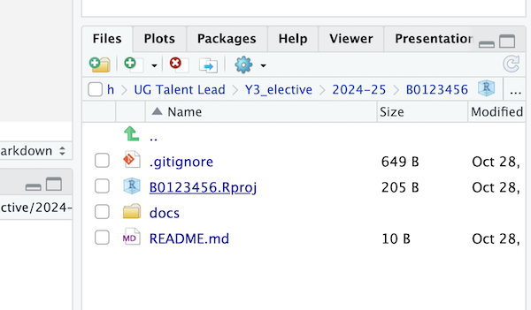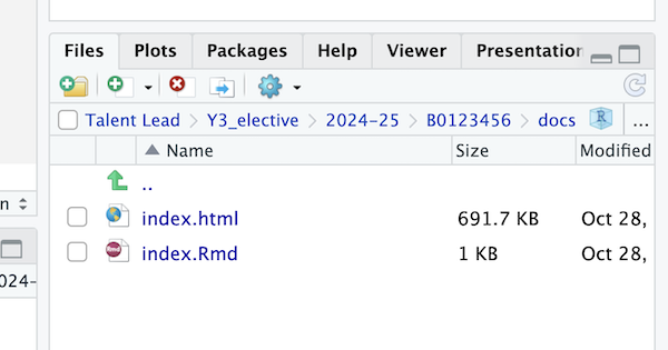 docsinside your project directory. This is where you will save your R Markdown and HTML files.