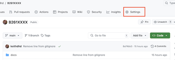 - Go to GitHub.com to set up the GitHub pages features. On your Github repo page, go to